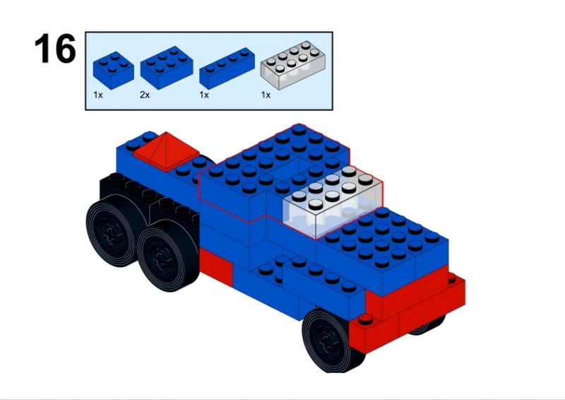 For this page, I decided to recreate the truck using standard LEGO bricks, carefully studying the original illustration and translating the shapes and proportions into LEGO elements. The result is a LEGO-compatible interpretation of a model that originally belonged to another classic building system.
