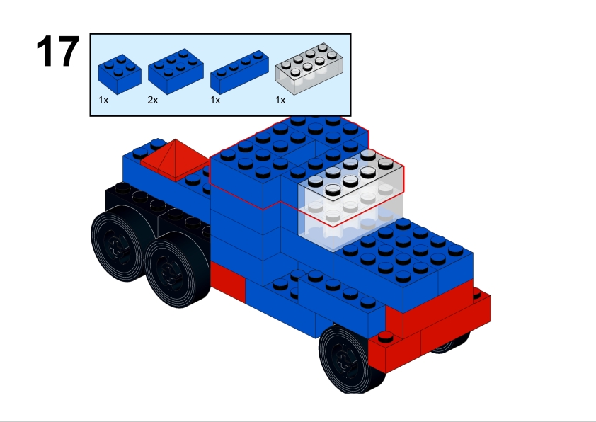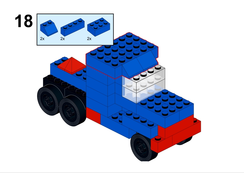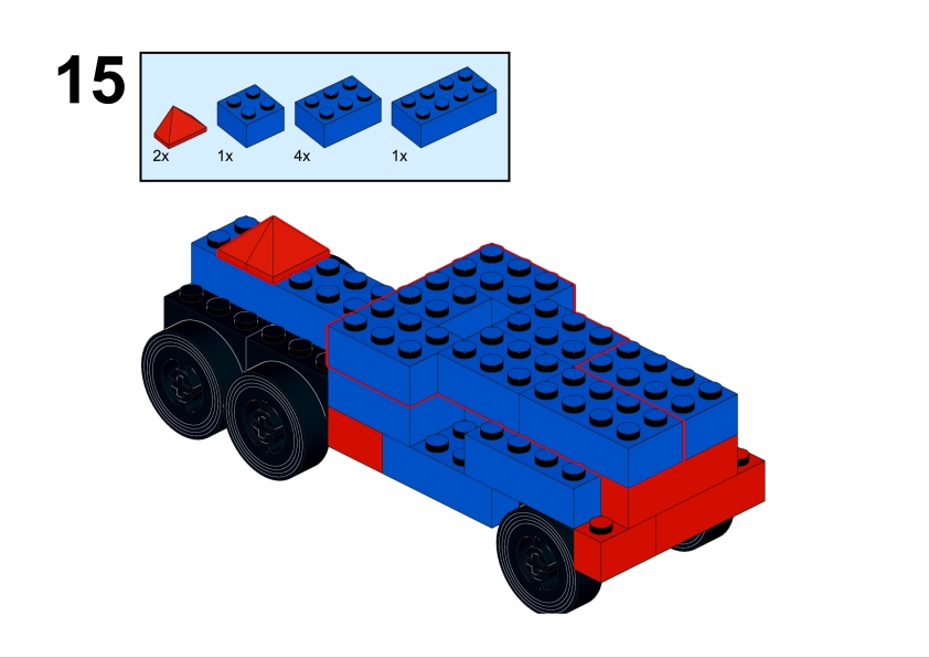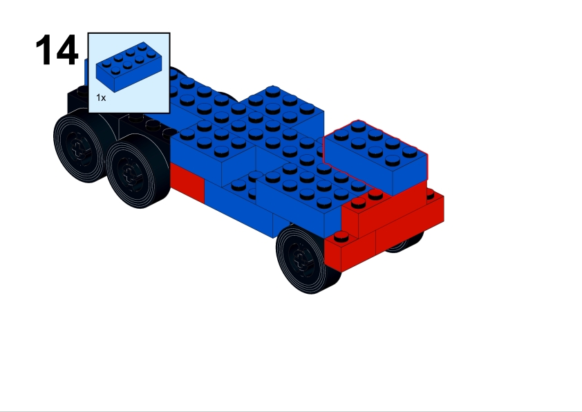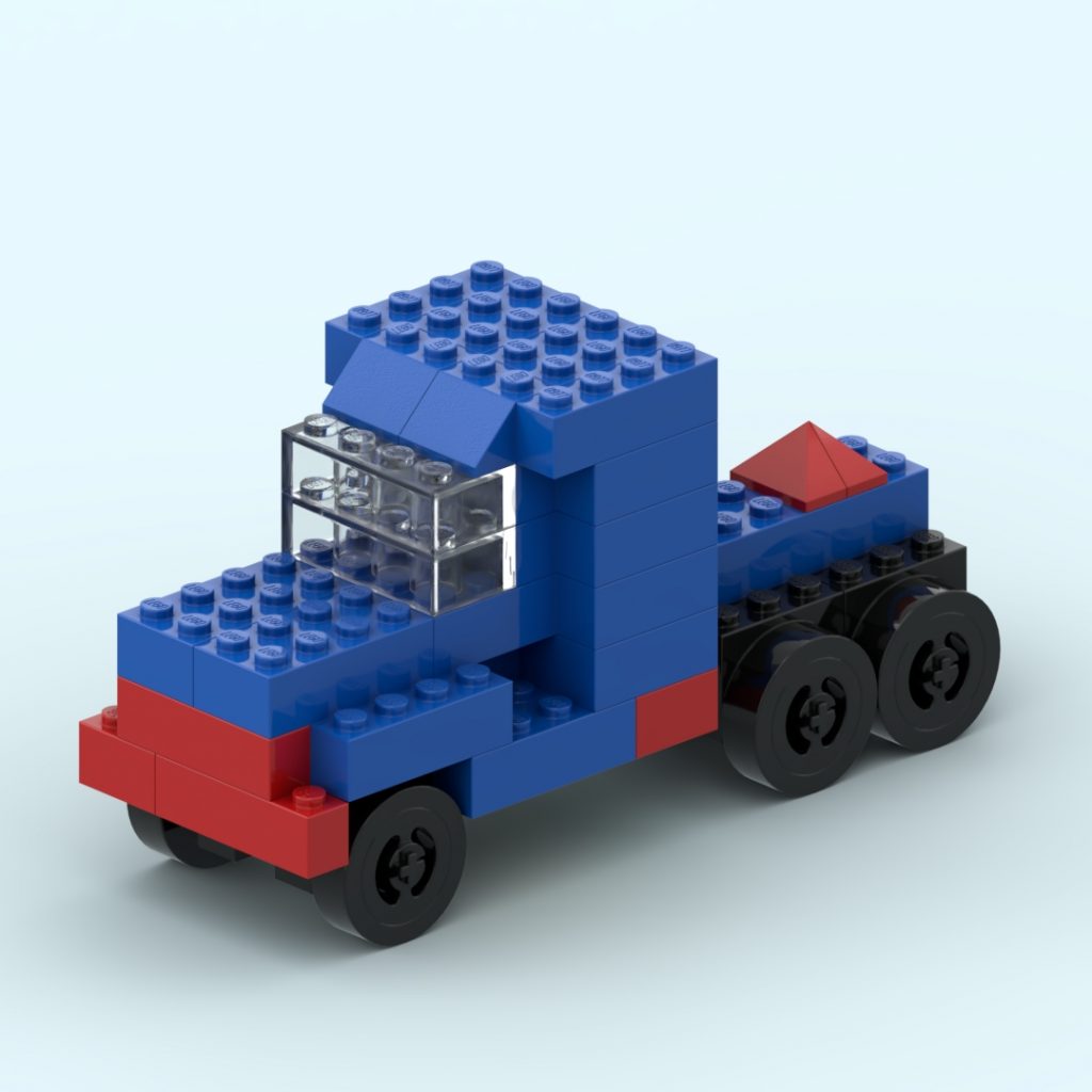 For this page, I decided to recreate the truck using standard LEGO bricks, carefully studying the original illustration and translating the shapes and proportions into LEGO elements. The result is a LEGO-compatible interpretation of a model that originally belonged to another classic building system.