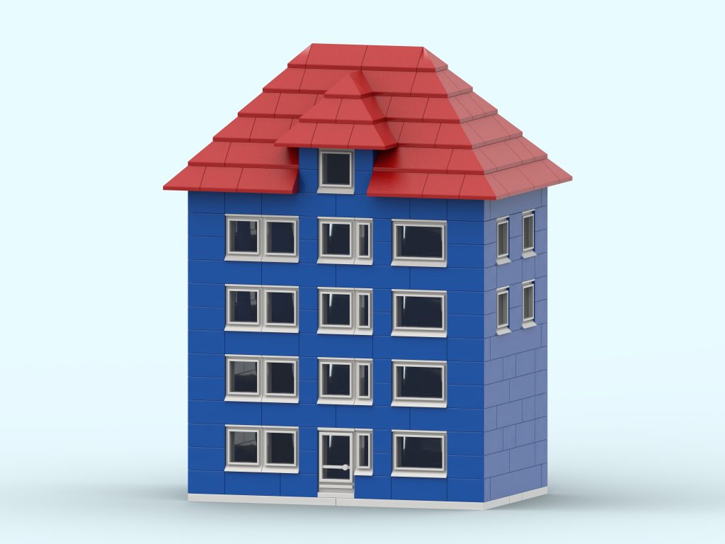 On page 2 of the German edition of Idea Book 238, quietly sitting among several colorful buildings, there is a tall blue apartment block that LEGO never bothered to name. No official title, no story, no proud label — just a building, minding its own business in the background.
