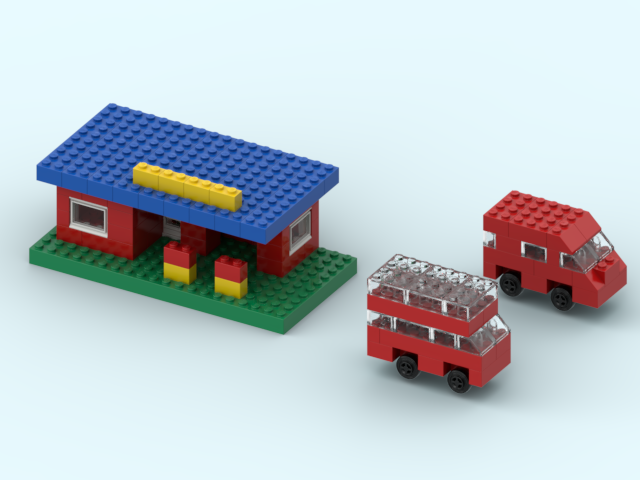 Naturally, I couldn’t resist rebuilding this charmingly geometric slice of roadside infrastructure using standard LEGO elements. By carefully studying the original drawing and translating its wonderfully rigid shapes into LEGO parts, I recreated the station as faithfully as possible.