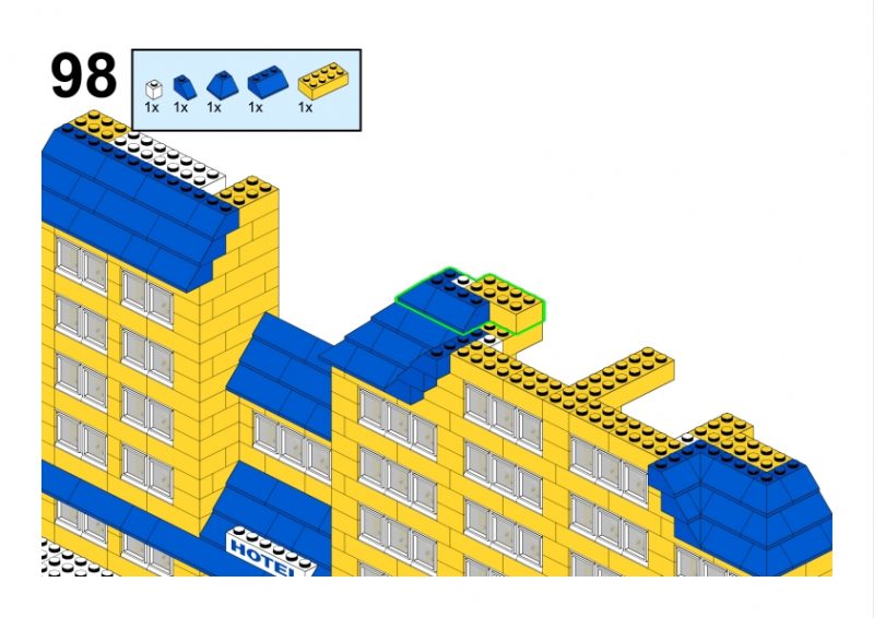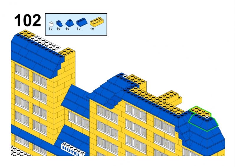 As always on VintageLegoBuilds.com, this model is my reconstruction of the building visible in the original Idea Book illustration. By carefully studying the proportions, windows, and roof geometry, I recreated the structure using modern LEGO elements and prepared instructions and a full parts inventory, so you too can build your own Grand Yellow Hotel.