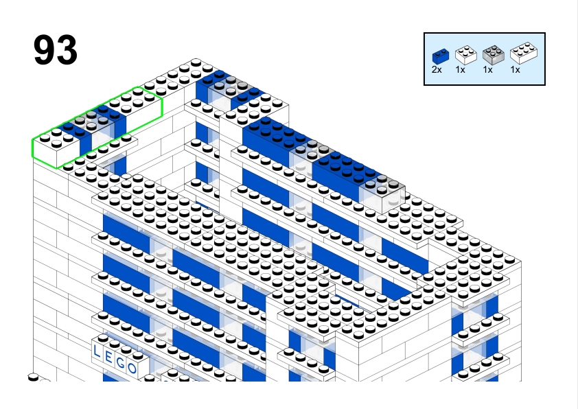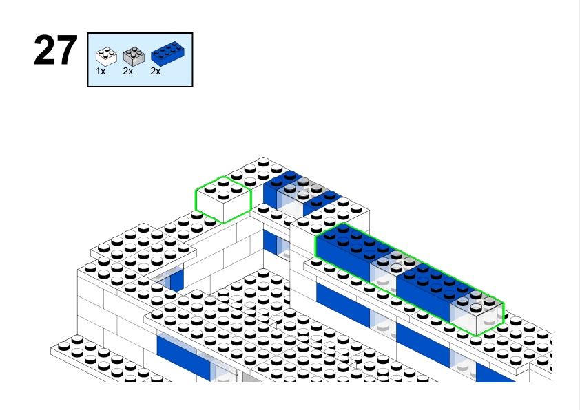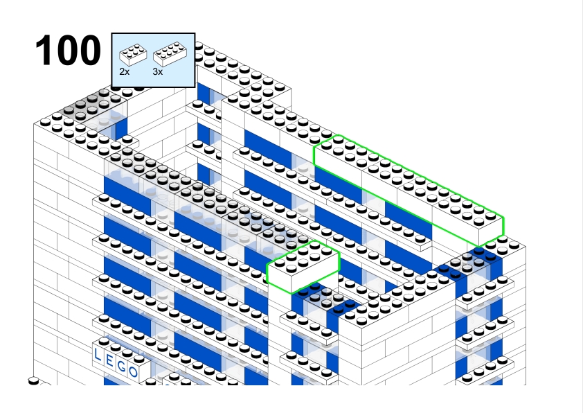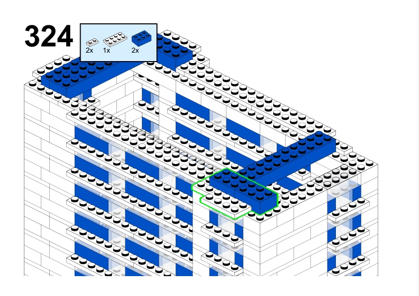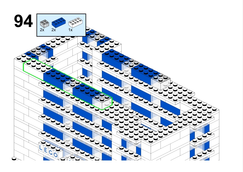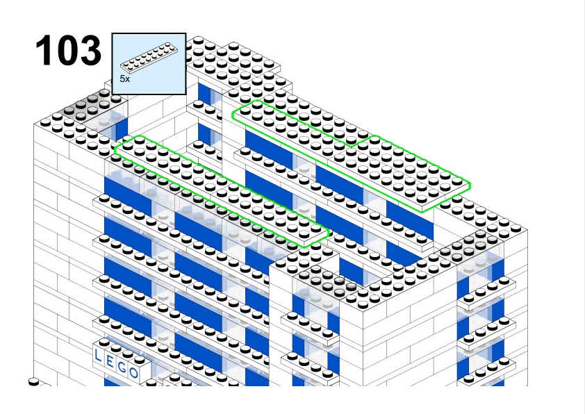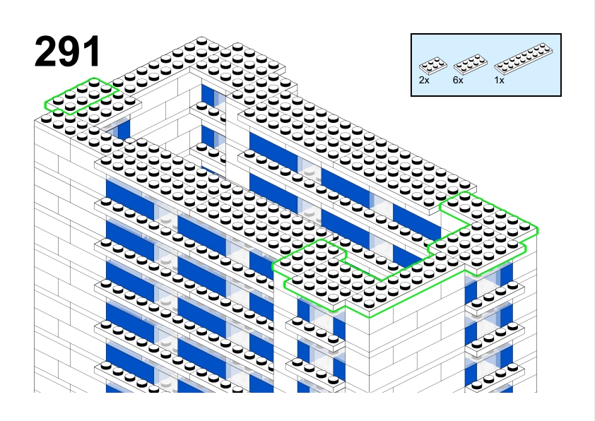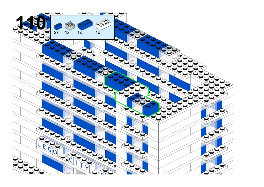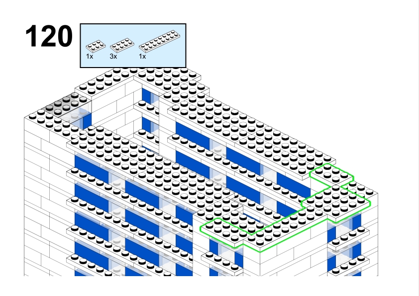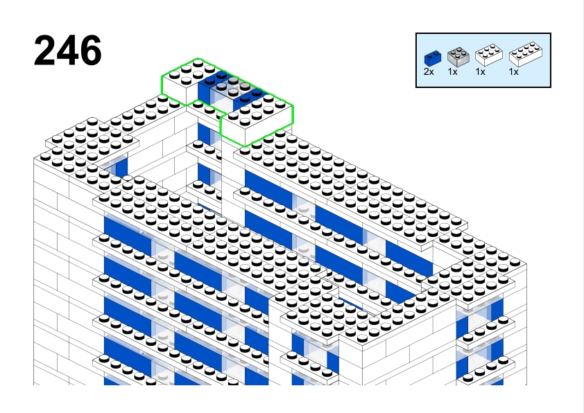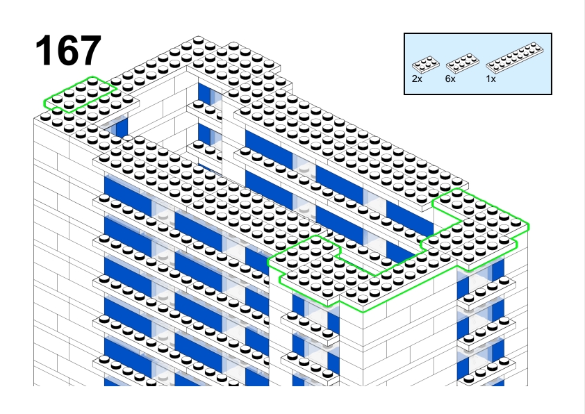 Unlike many of the more playful houses in the scene, this tower feels serious. Very serious. Its façade repeats the same pattern floor after floor, like a disciplined grid designed by someone who truly trusted geometry. The structure is demanding in transparent bricks and white plates, which create those long horizontal bands of windows that wrap around the building like layers of glass and concrete.