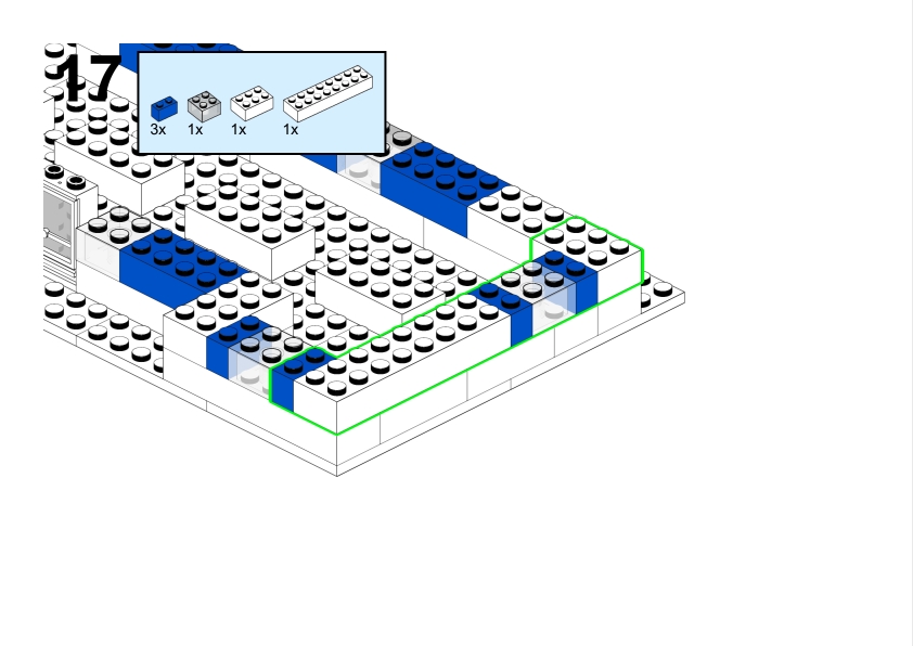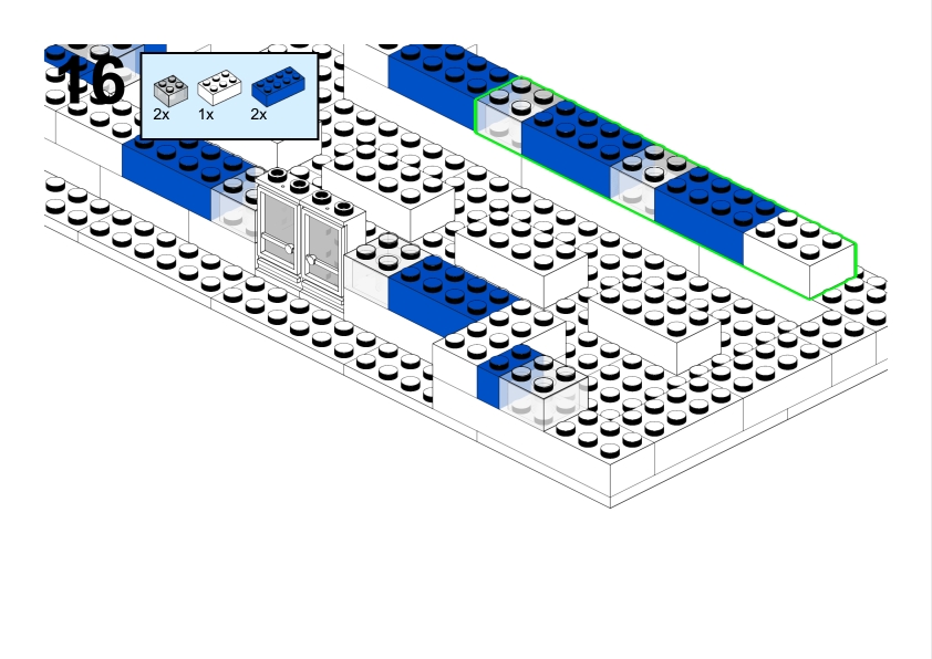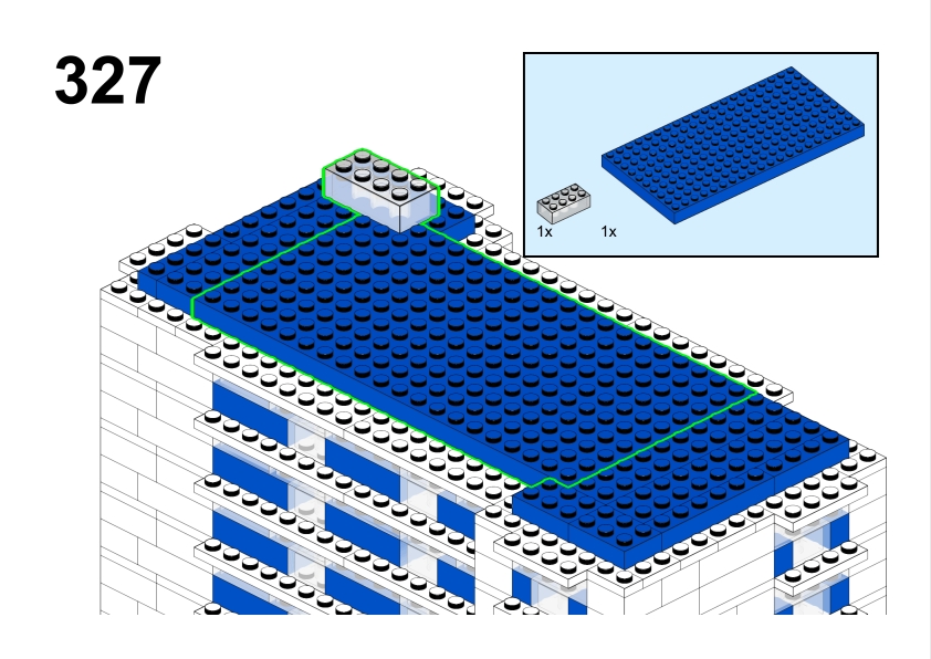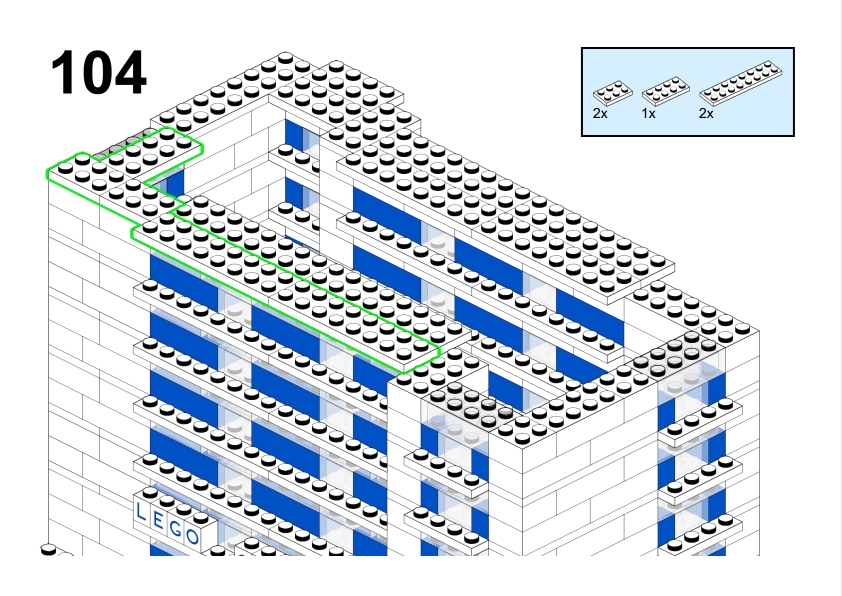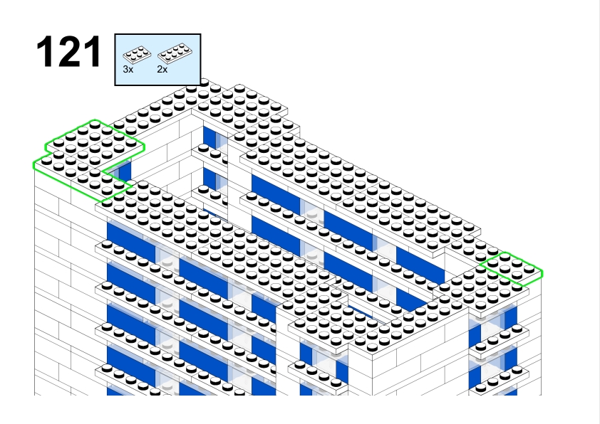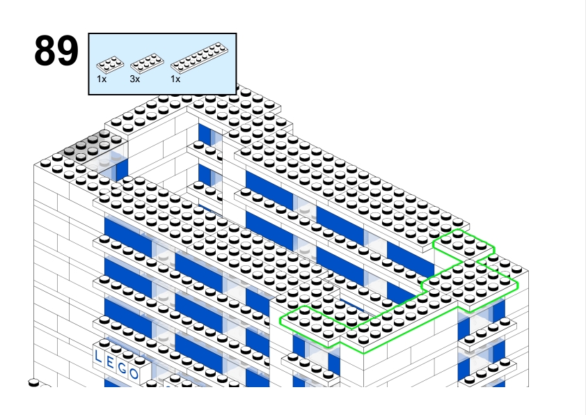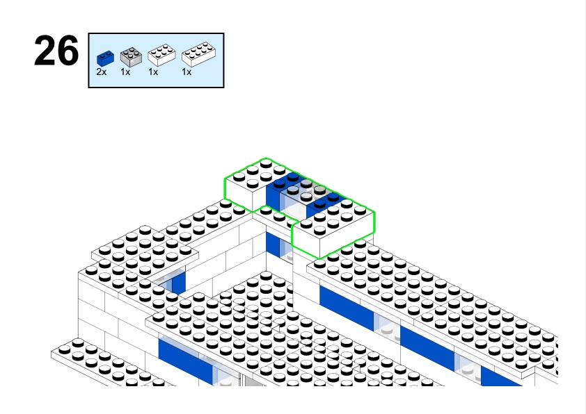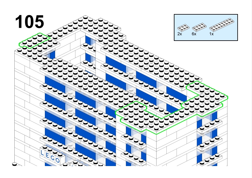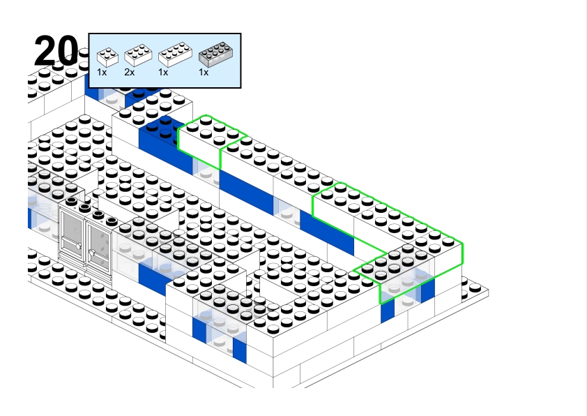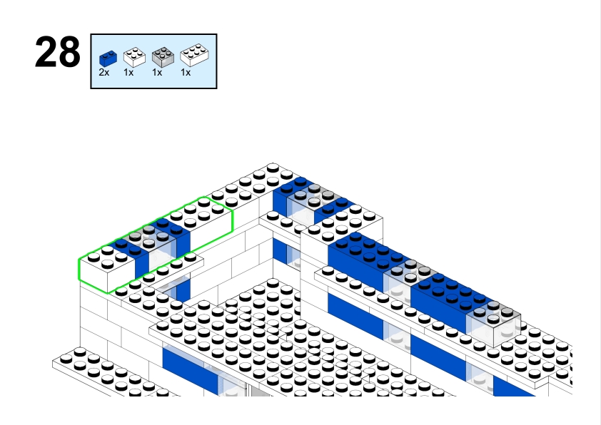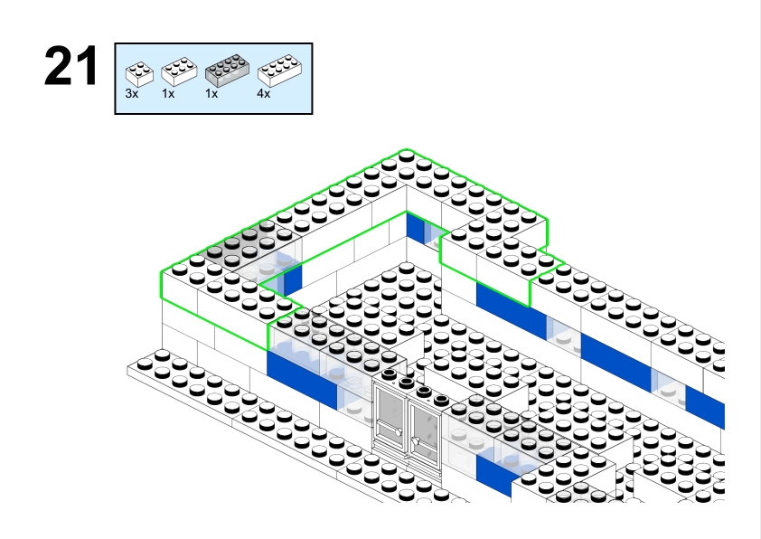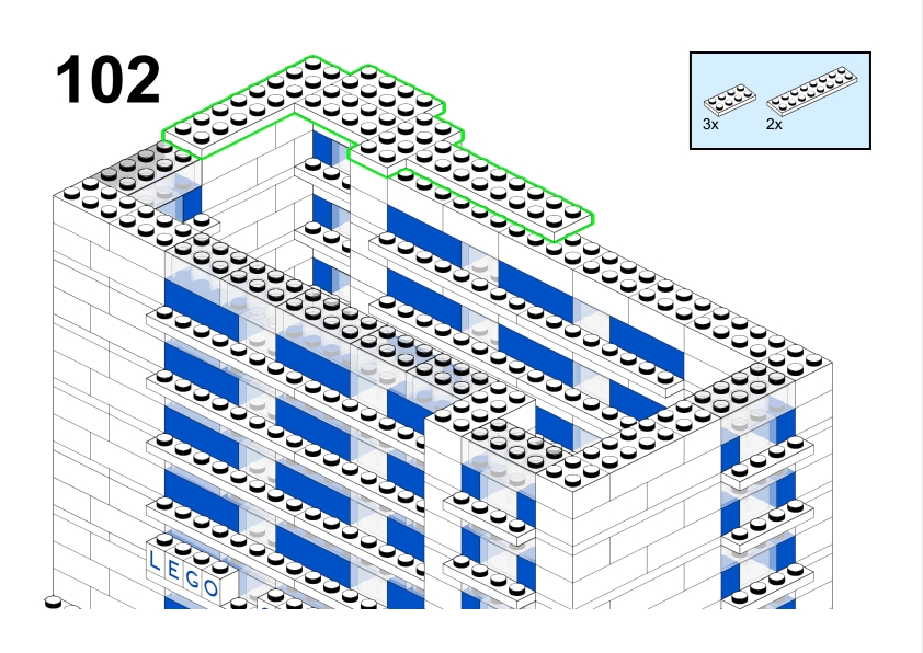 Unlike many of the more playful houses in the scene, this tower feels serious. Very serious. Its façade repeats the same pattern floor after floor, like a disciplined grid designed by someone who truly trusted geometry. The structure is demanding in transparent bricks and white plates, which create those long horizontal bands of windows that wrap around the building like layers of glass and concrete.