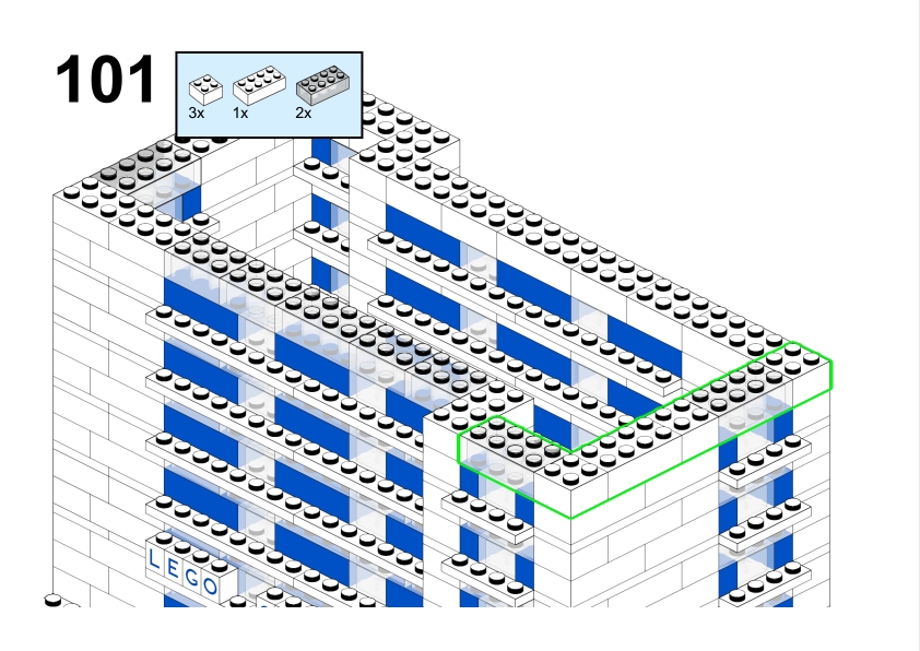 Deep in the background ofpage 2 of the German edition of Idea Book 238-1, behind the colorful townhouses and lively traffic circle, stands a tall and rather mysterious structure. It is easy to miss at first glance, but once you notice it, its rigid vertical lines and endless rows of windows give it a certain authority.